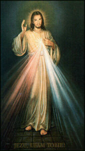 Jego rysunek został ukazany w wizji, jaką s. Faustyna miała 22 lutego 1931 roku w celi płockiego klasztoru.Wieczorem, kiedy byłam w celi - pisze w Dzienniczku - ujrzałam Pana Jezusa ubranego w szacie białej. Jedna ręka wzniesiona do błogosławieństwa, a druga dotykała szaty na piersiach. Z uchylenia szaty na piersiach wychodziły dwa wielkie promienie, jeden czerwony, a drugi blady. (...)Po chwili powiedział mi Jezus: Wymaluj obraz według rysunku, który widzisz, z podpisem: Jezu, ufam Tobie(Dz.47). Chcę, aby ten obraz(...) by uroczyście poświęcony w pierwszą niedzielę po Wielkanocy, ta niedziela ma być świętem Miłosierdzia (Dz.49). Czytaj więcej »